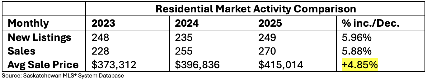 Regina saw 164 home sales in December, down 17% from last year, which is normal for the holiday season. Even so, sales were 4% above the long-term average. Overall, 2024 was a record year, and 2025 stayed close to that pace, with sales only 2% lower than last year and still 24% above the 10-year average.